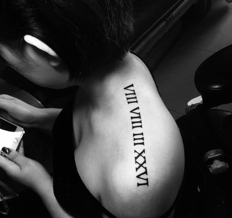 当前位置: 首页 >北京市纹身店-北京花刺纹身工作室纹身图案>罗马数字完成纹身图片_成品肩部欧美字符纹身图案