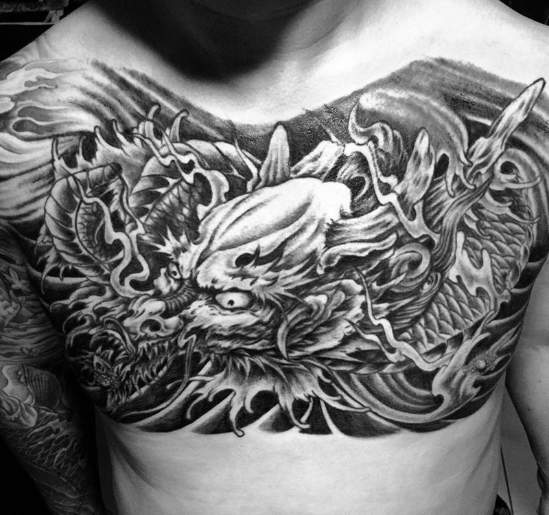 当前位置: 首页 >北京市纹身店-北京花刺纹身工作室纹身图案>今日工作花胸龙头纹身图片_传统动物胸部纹身图案