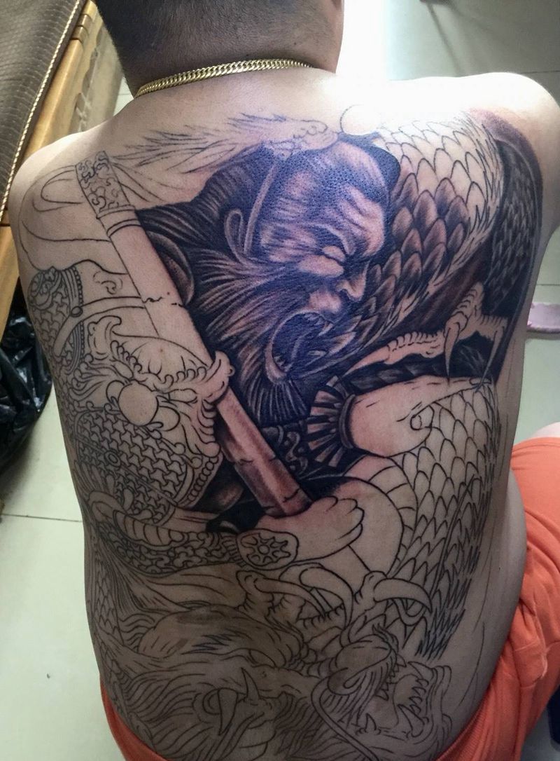今日工作满背斗战胜佛未完成纹身图片_背部传统人物纹身图案