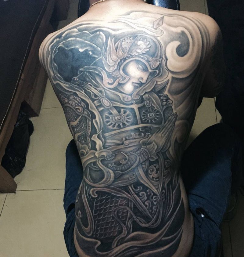 今日工作满背韦坨遮盖完成!纹身图片_传统背部人物宗教纹身图案