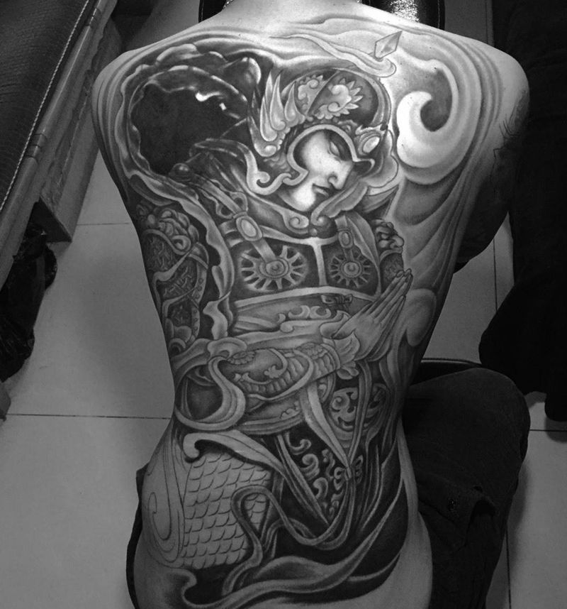 今日工作满背韦坨遮盖完成!纹身图片_传统背部人物宗教纹身图案