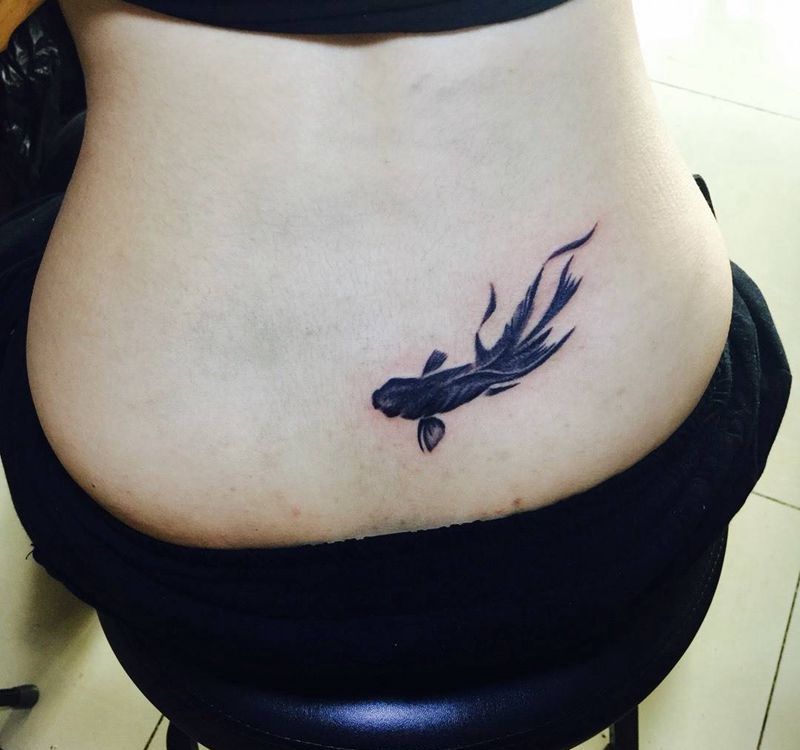 今日工作小鱼一枚纹身图片_成品腰部传统动物国画纹身图案