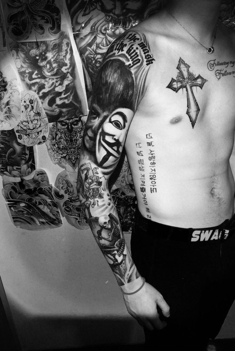 当前位置: 首页 >北京市纹身店-北京花刺纹身工作室纹身图案>今日工作欧美花臂完成纹身图片_手臂人物写实欧美纹身图案