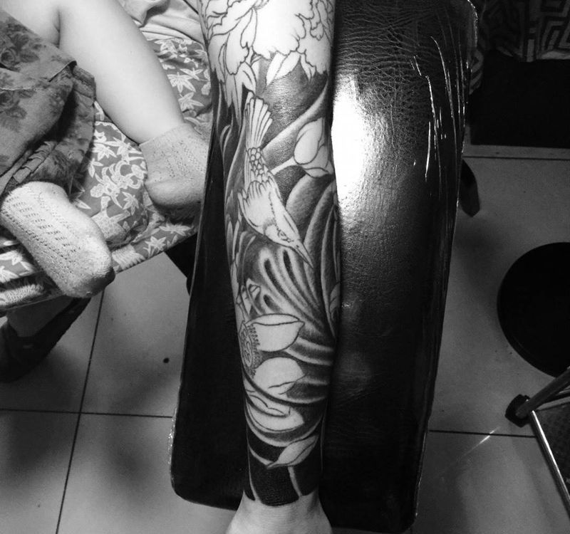 今日工作花臂未完成纹身图片_手臂传统植物纹身图案