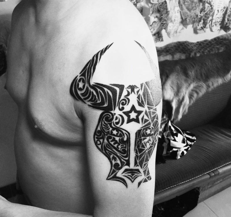 今日工作牛头图腾纹身图片_手臂欧美图腾动物纹身图案