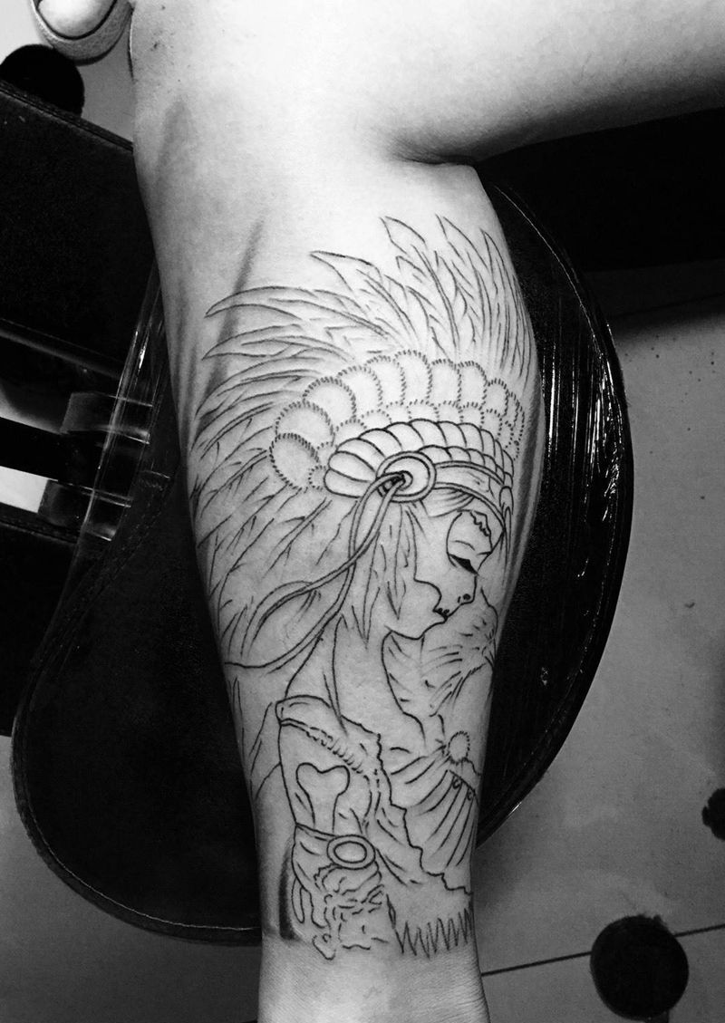 艺妓VS印第安女孩纹身图片_欧美传统腿部人物纹身图案