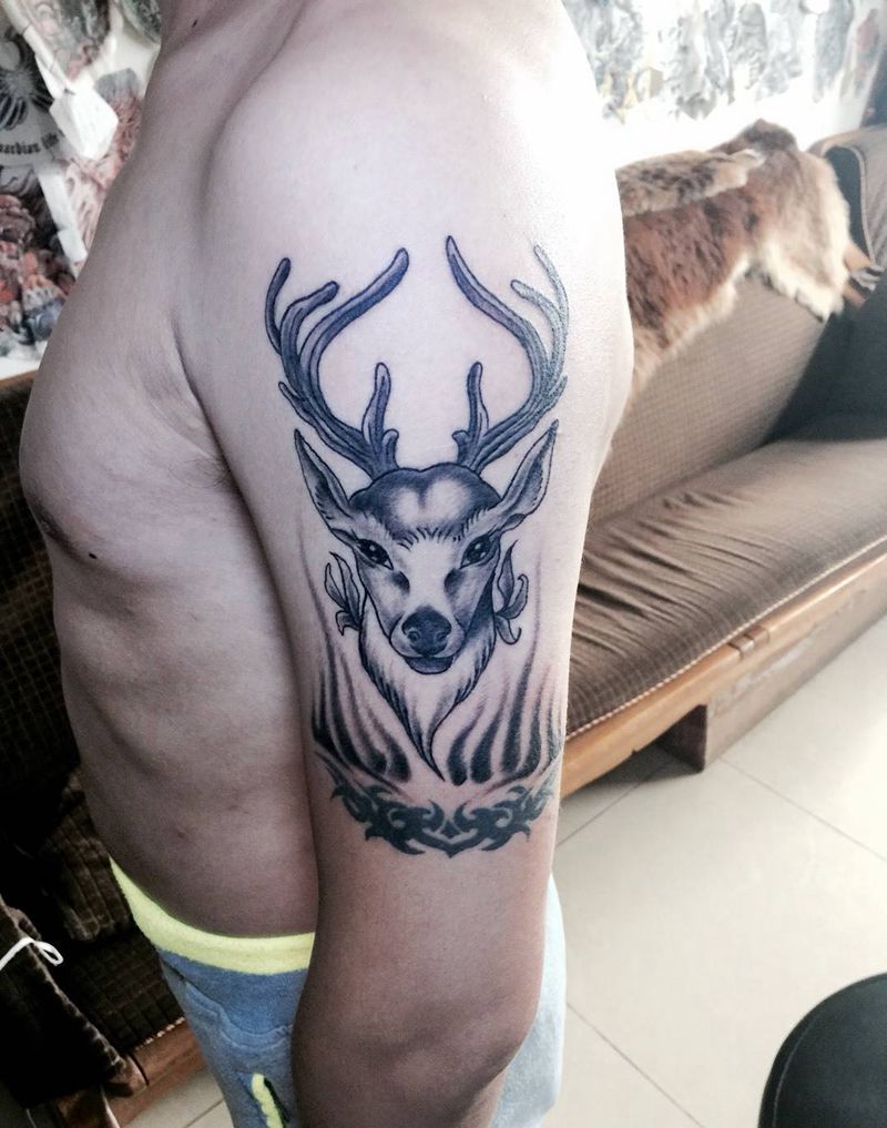 当前位置: 首页 >北京市纹身店-北京花刺纹身工作室纹身图案>今日工作大臂鹿头纹身图片_欧美动物清新手臂纹身图案