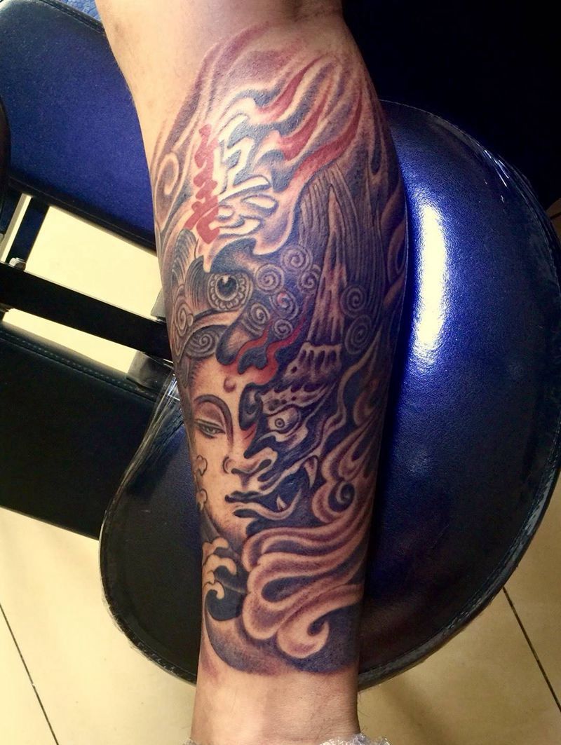 当前位置: 首页 >北京市纹身店-北京花刺纹身工作室纹身图案>今日工作小腿一念之间纹身图片_成品腿部传统人物宗教鬼神纹身图案