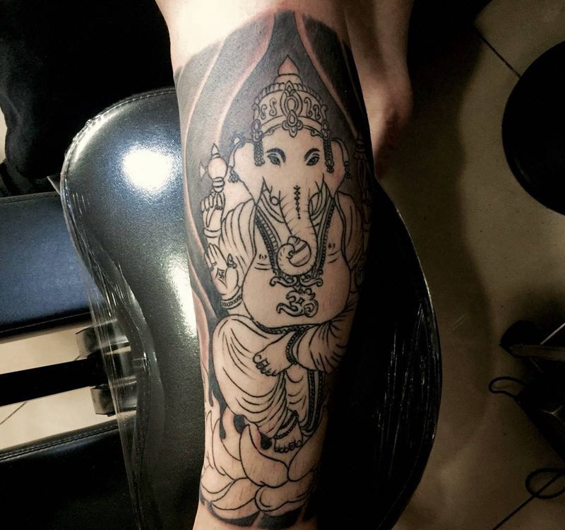 今日工作未完成下次继续纹身图片_腿部传统鬼神植物动物纹身图案