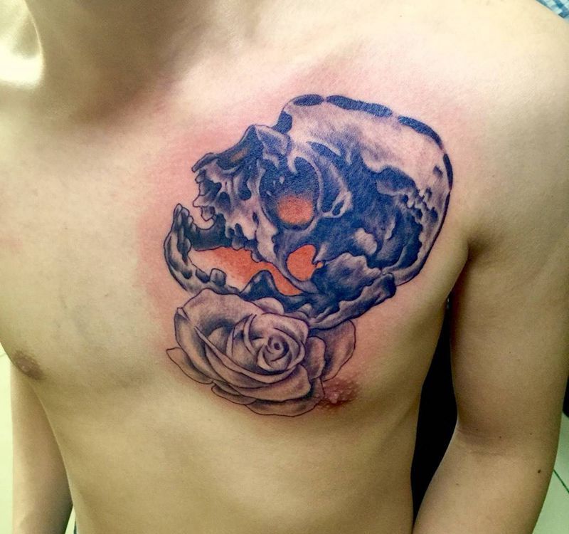 当前位置: 首页 >北京市纹身店-北京花刺纹身工作室纹身图案>今日工作胸前骷髅纹身图片_欧美写实胸部纹身图案