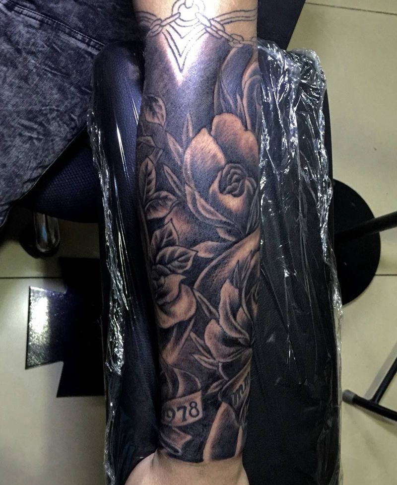 今日工作未完成下次继续纹身图片_欧美手臂写实静物植物纹身图案