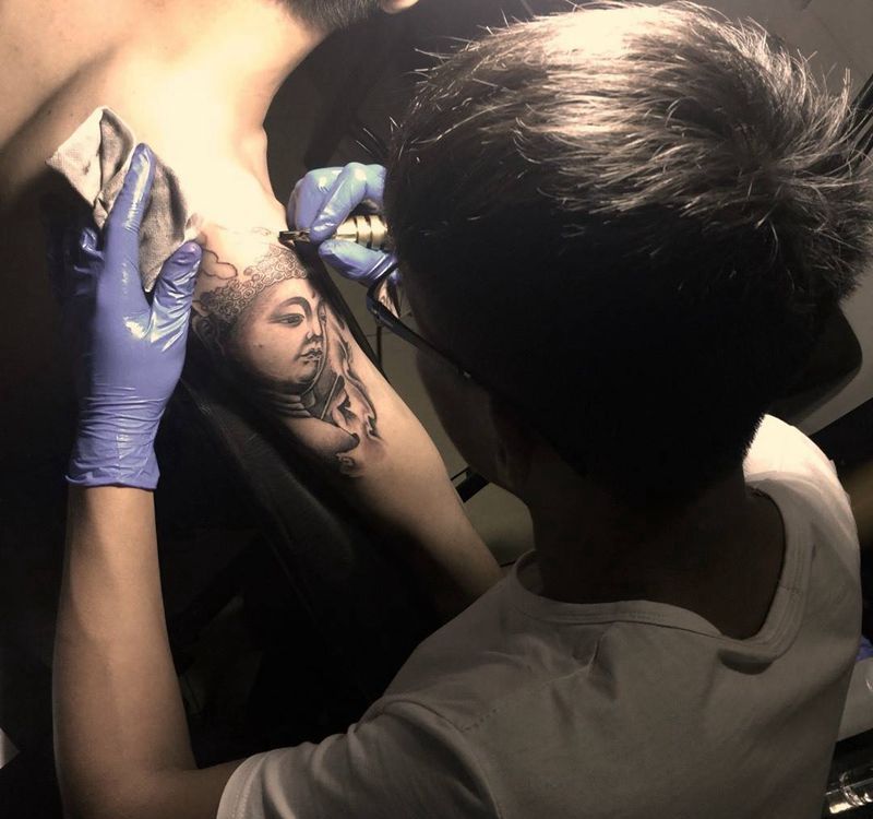 当前位置: 首页 >北京市纹身店-北京花刺纹身工作室纹身图案>今日学员小宁作品纹身图片_成品手臂传统人物宗教纹身图案