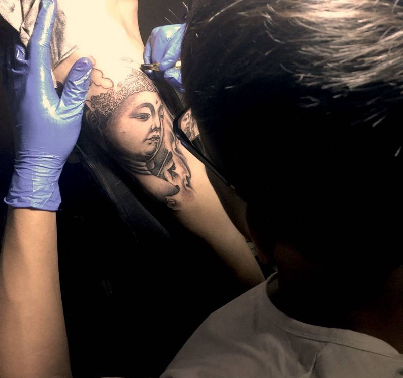 今日学员小宁作品纹身图片_成品手臂传统人物宗教纹身图案
