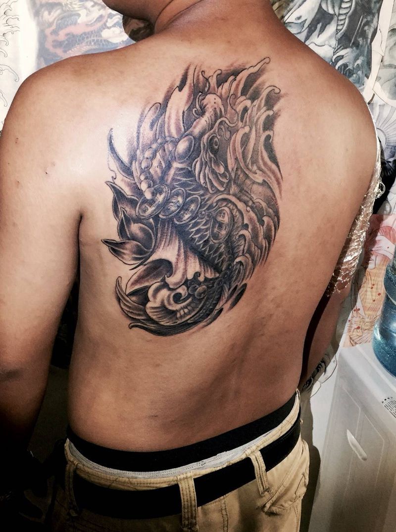 当前位置: 首页 >北京市纹身店-北京花刺纹身工作室纹身图案>今日工作鲤鱼纹身图片_成品背部肩部传统动物纹身图案