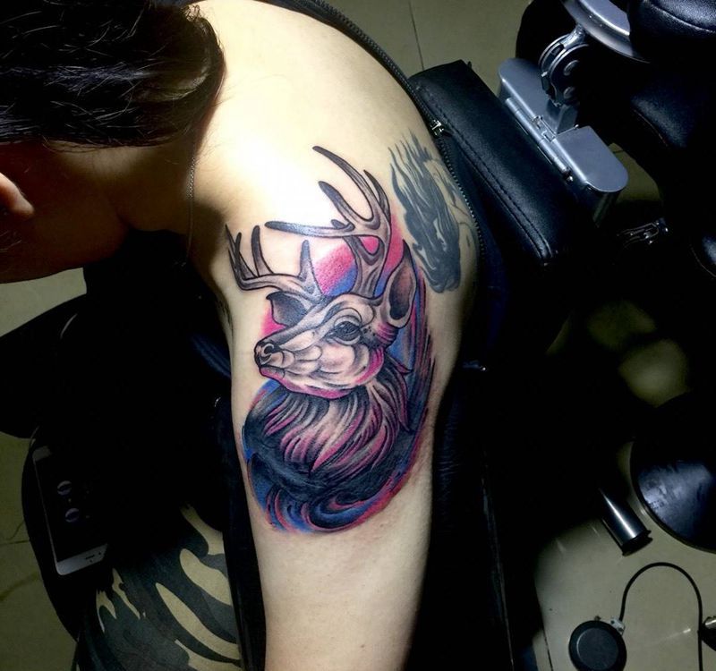 当前位置: 首页 >北京市纹身店-北京花刺纹身工作室纹身图案>今日工作大臂遮盖鹿头纹身图片_手臂欧美动物纹身图案
