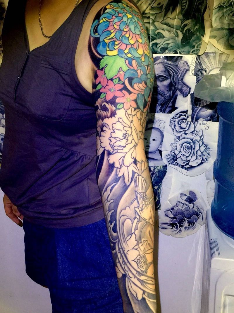 当前位置: 首页 >北京市纹身店-北京花刺纹身工作室纹身图案>今日工作传统花臂纹身图片_手臂传统植物动物纹身图案