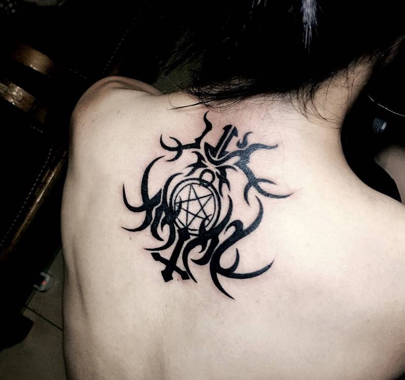 今日工作撒旦纹身图片_背部欧美图腾纹身图案