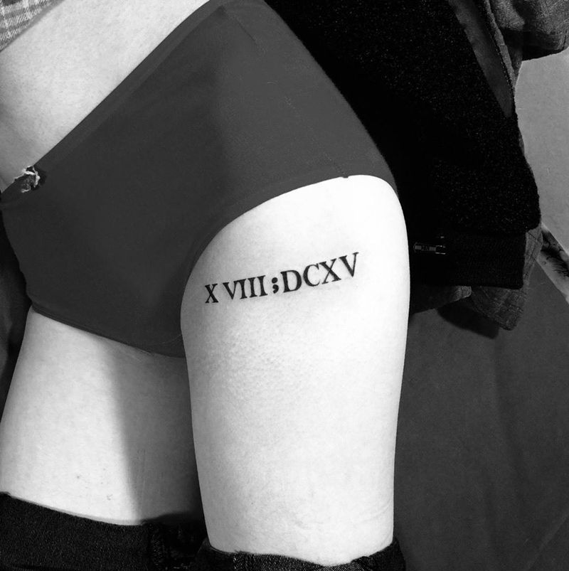 今日工作小清新罗马数字纹身图片_腿部欧美清新字符纹身图案