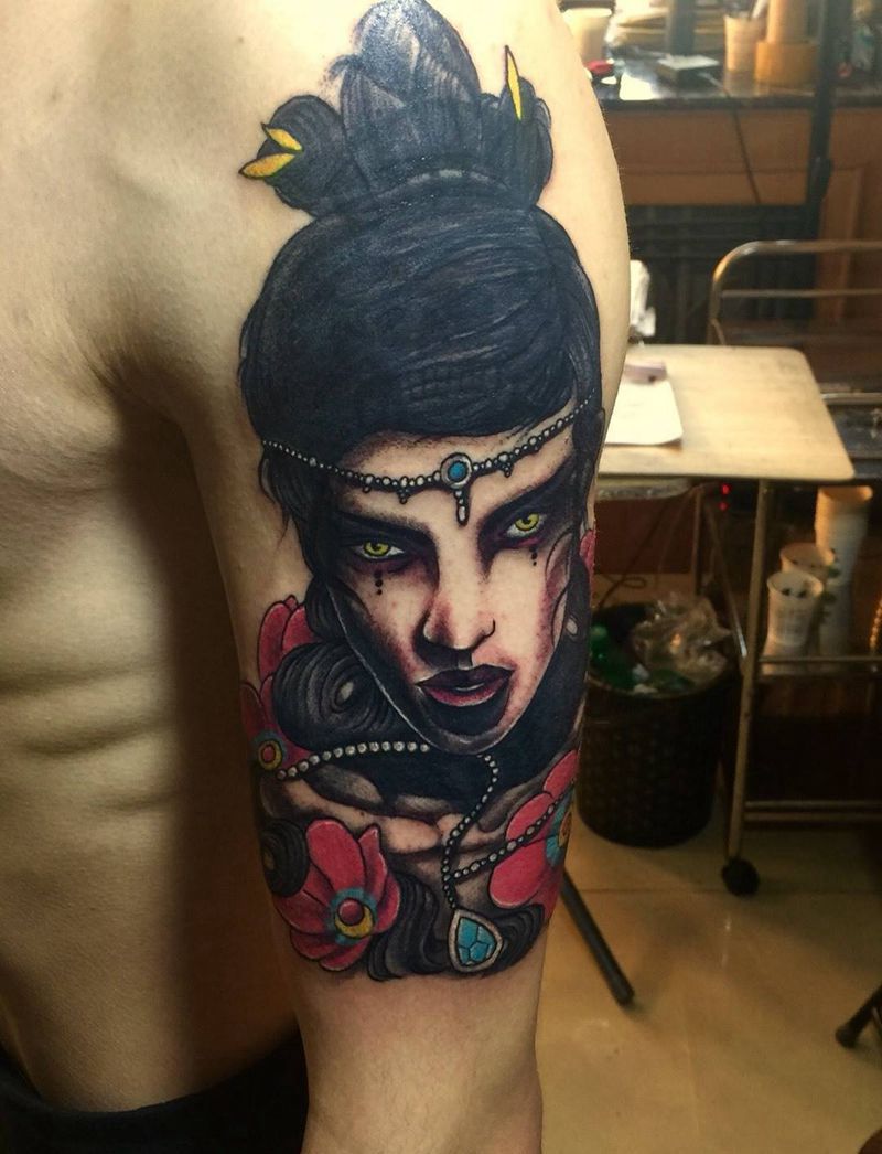 当前位置: 首页 >北京市纹身店-北京花刺纹身工作室纹身图案>今日工作大臂遮盖纹身图片_手臂欧美写实人物肖像纹身图案