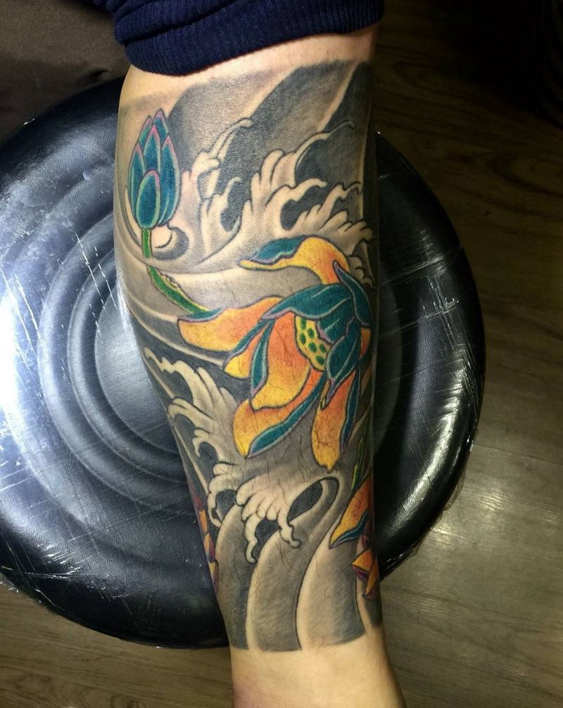 一组15张莲花纹身手