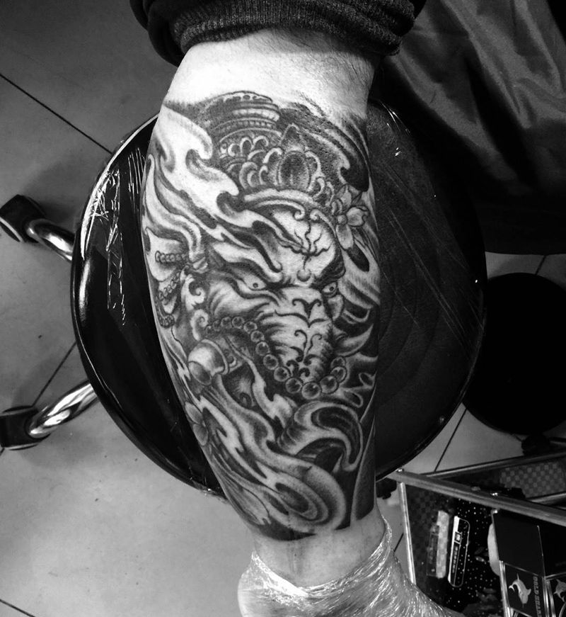 当前位置: 首页 >北京市纹身店-北京花刺纹身工作室纹身图案>今日工作小腿象神完成纹身图片_成品腿部传统动物鬼神宗教纹身图案