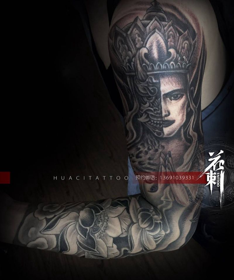 当前位置: 首页 >北京市纹身店-北京花刺纹身工作室纹身图案>【一念入魔一念成佛】纹身图片_成品手臂传统人物鬼神宗教静物纹身图案