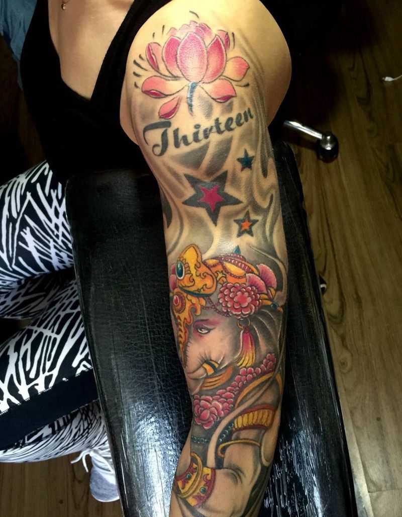 当前位置: 首页 >北京市纹身店-北京花刺纹身工作室纹身图案>今日工作象神上色纹身图片_手臂传统动物宗教人物纹身图案