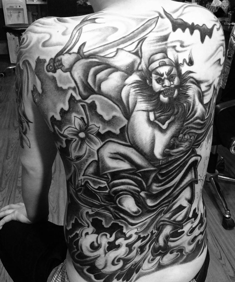 今日工作满背钟馗修改未完成纹身图片_背部传统人物鬼神纹身图案