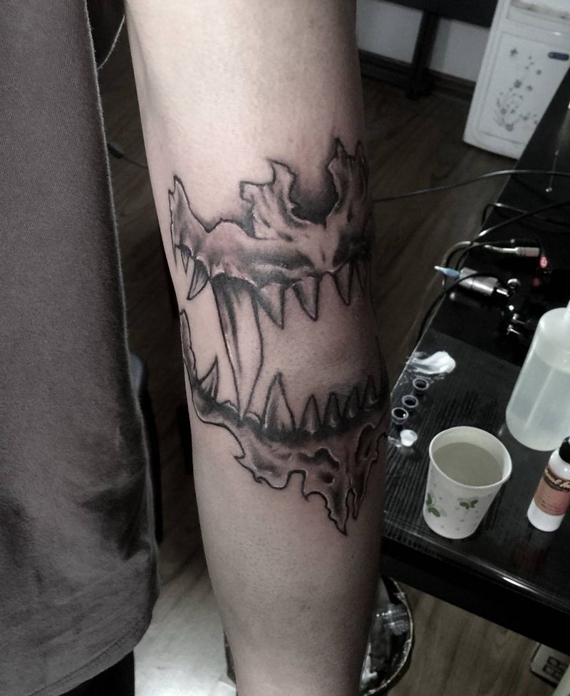 今日小宁工作下颚骨完成纹身图片_手臂欧美写实动物纹身图案