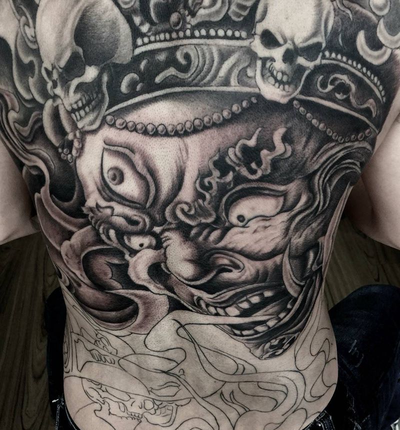 黑灰满背纹身图案