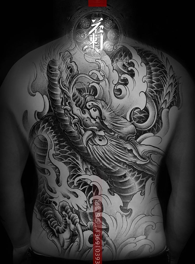 黑灰满背纹身图案