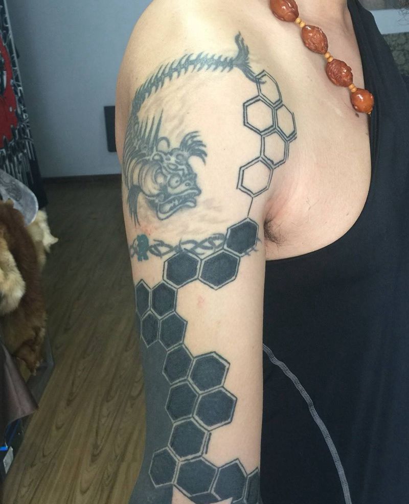 今日工作黑臂修改添加未完成纹身图片_手臂欧美纹身图案