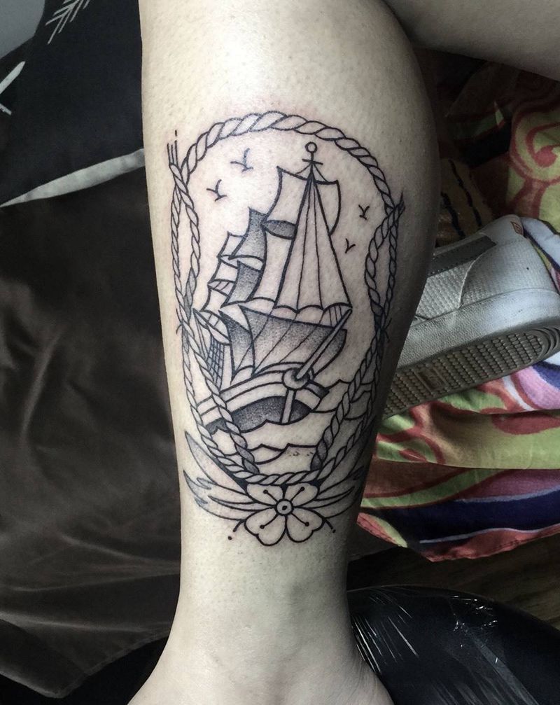 • T包小腿吹火男+阿多福纹身图片_腿部老传统新传统吹火男阿