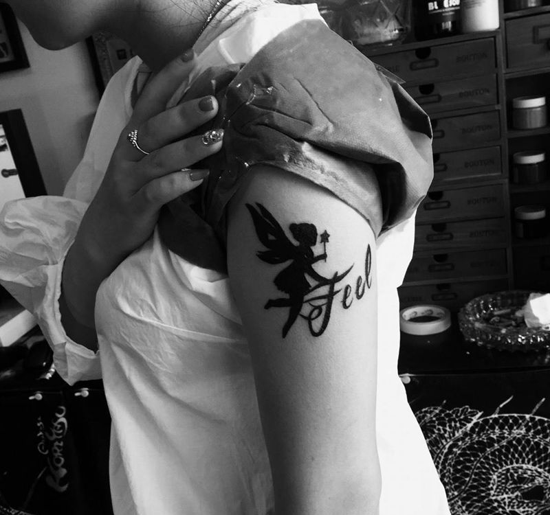 当前位置: 首页 >北京市纹身店-北京花刺纹身工作室纹身图案>今日小宁工作!花体字!小图腾天使纹身图片_手臂欧美清新字符人物纹身图案