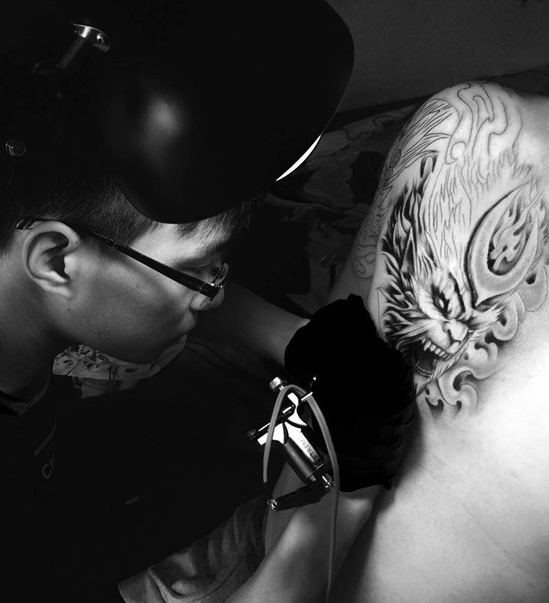 黑灰满背纹身图案
