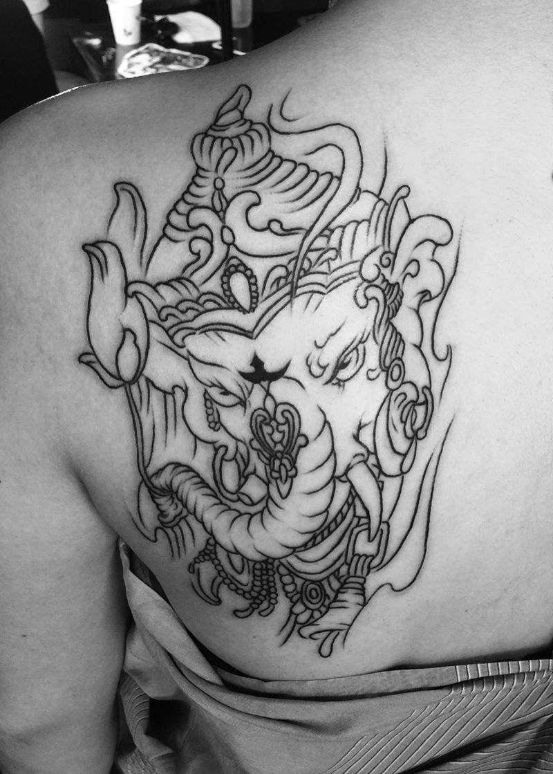 今日小宁工作割线!下次继续纹身图片_背部手臂传统人物动物宗教纹身图案