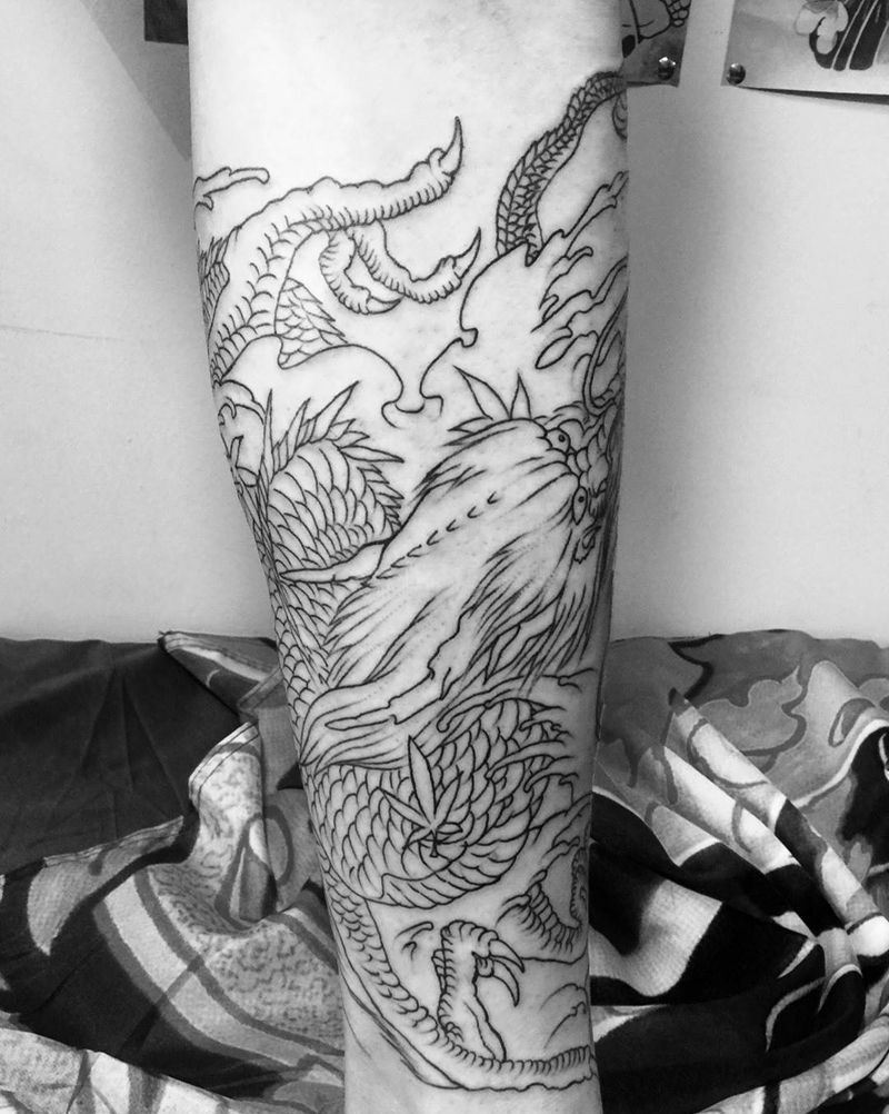• T网红王老大花腿龙纹身图片_腿部新传统纹身图案