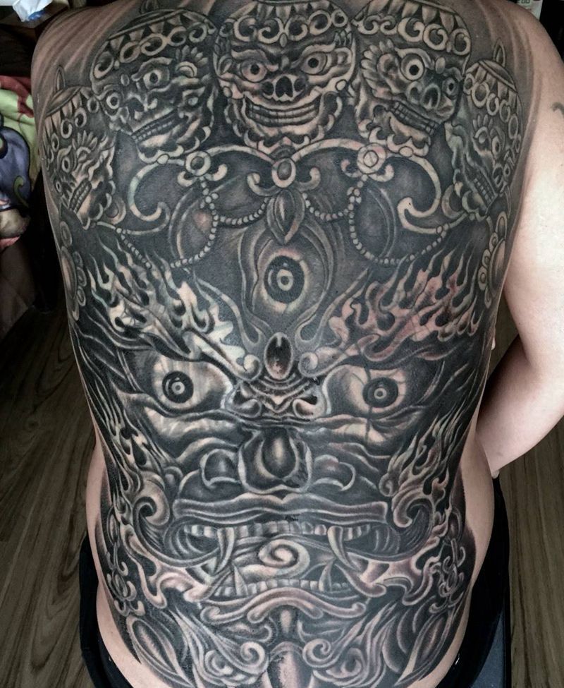 当前位置: 首页 >北京市纹身店-北京花刺纹身工作室纹身图案>满背遮盖大黑天纹身图片_背部传统人物宗教鬼神纹身图案