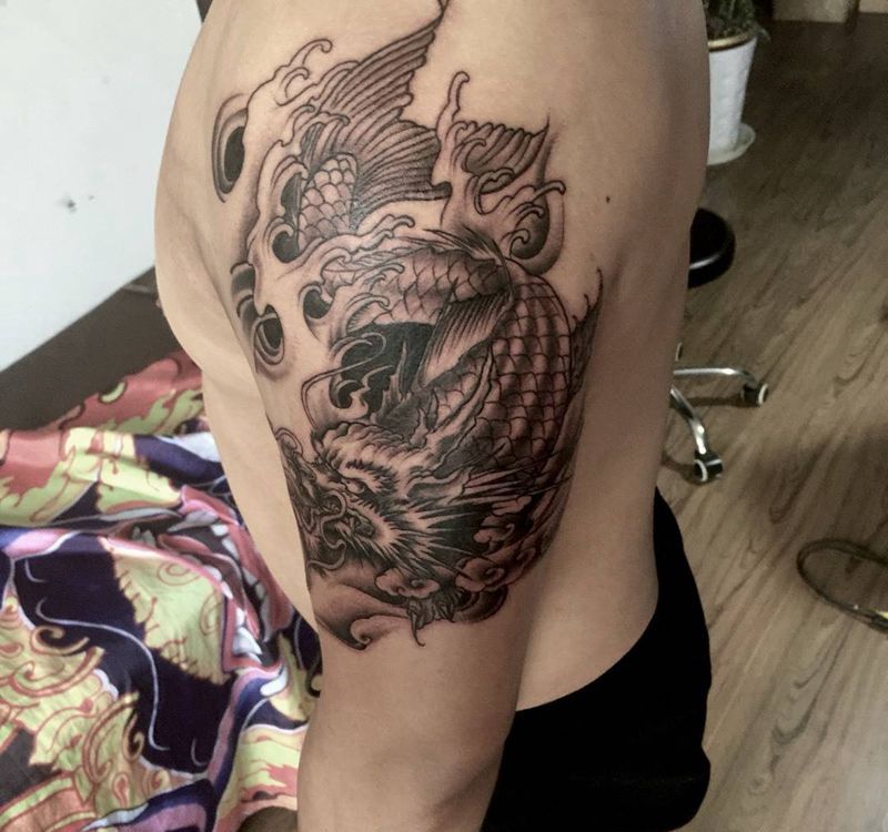 当前位置: 首页 >北京市纹身店-北京花刺纹身工作室纹身图案>大臂鳌鱼纹身图片_成品手臂传统动物纹身图案