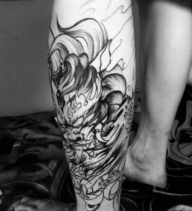 当前位置: 首页 >北京市纹身店-北京花刺纹身工作室纹身图案>【龙の貔貅】纹身图片_腿部传统动物纹身图案