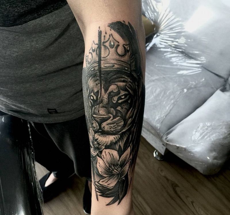 当前位置: 首页 >北京市纹身店-北京花刺纹身工作室纹身图案>大猫!纹身图片_手臂欧美动物植物成品纹身图案