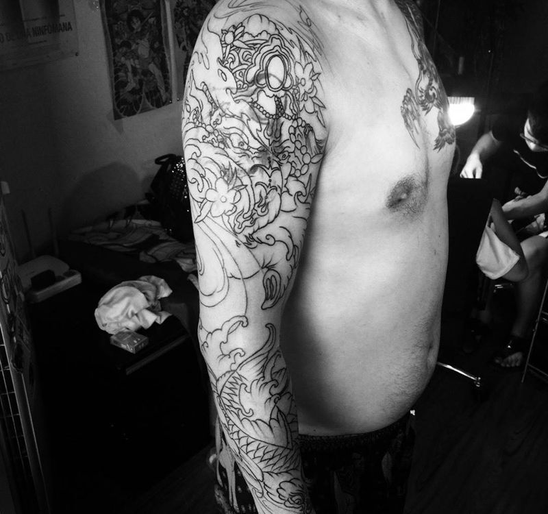 当前位置: 首页 >北京市纹身店-北京花刺纹身工作室纹身图案>花臂遮盖未完成!纹身图片_手臂传统人物动物宗教纹身图案