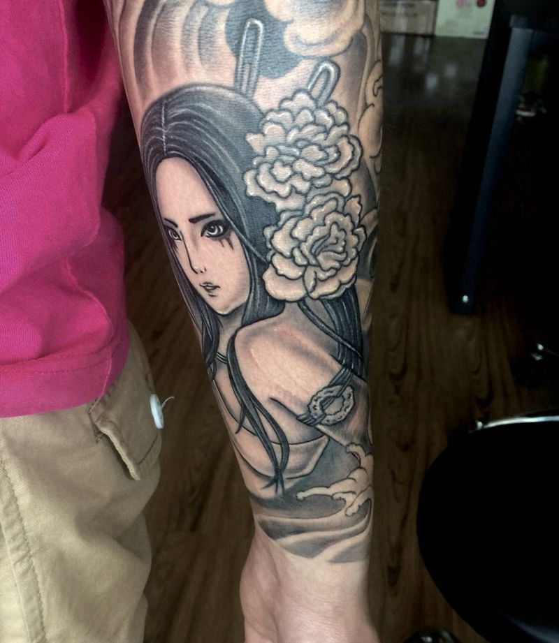 旧纹身修改!纹身图片_成品手臂传统人物纹身图案