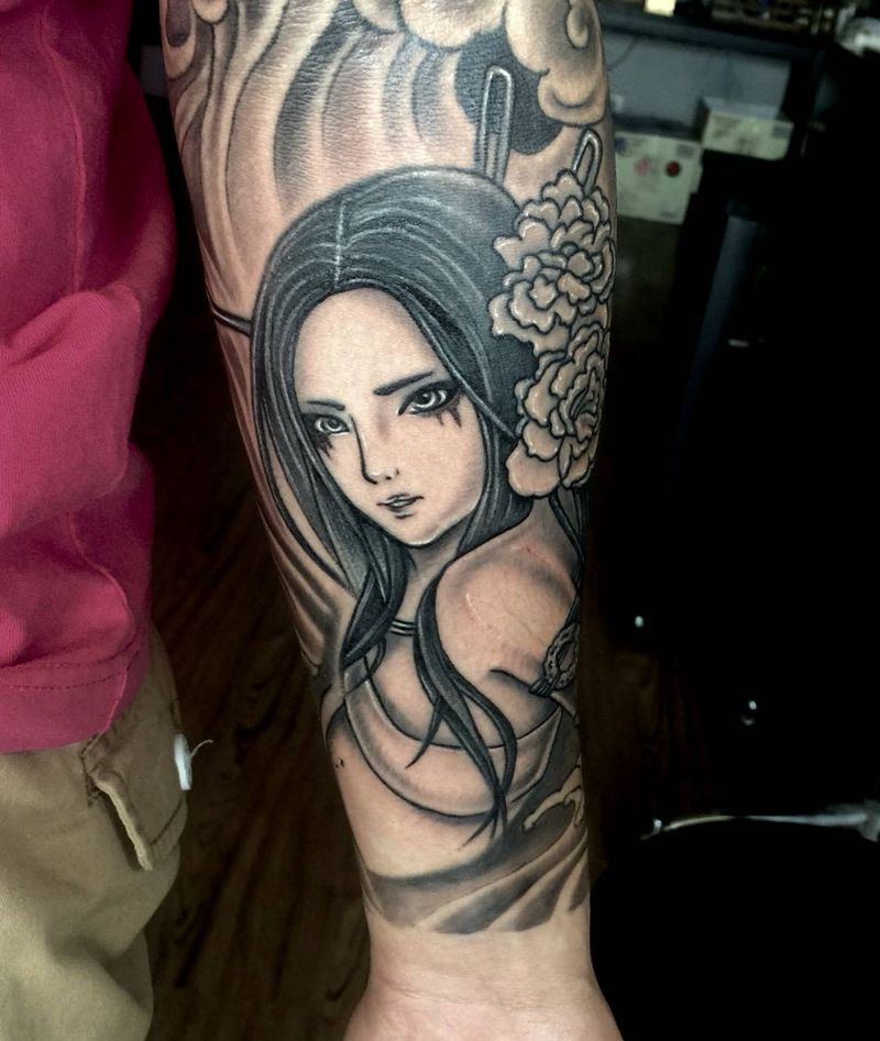 旧纹身修改!纹身图片_成品手臂传统人物纹身图案