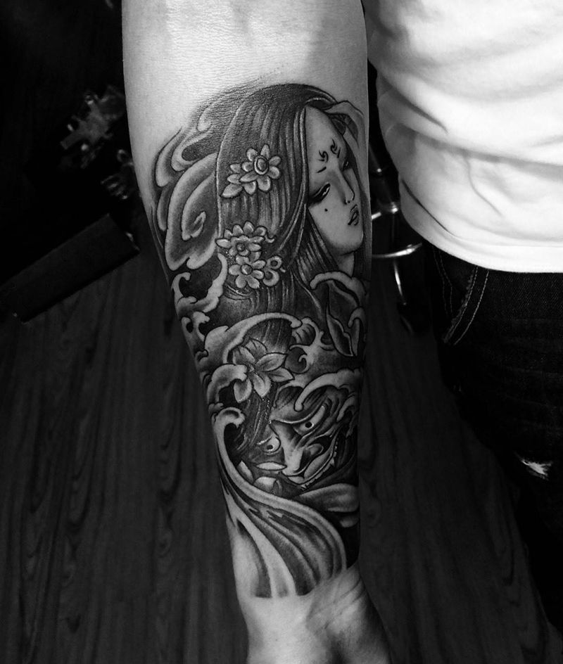 今日工作小臂艺妓纹身图片_成品手臂传统人物纹身图案