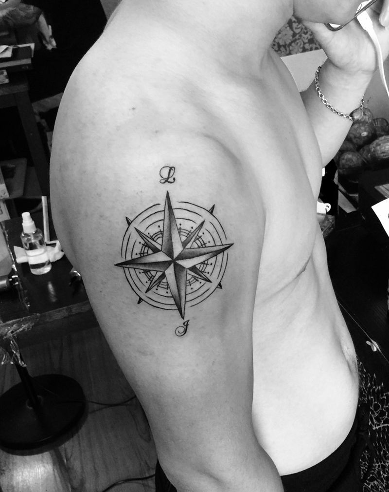当前位置: 首页 >北京市纹身店-北京花刺纹身工作室纹身图案>大臂罗盘。小宁作品!纹身图片_