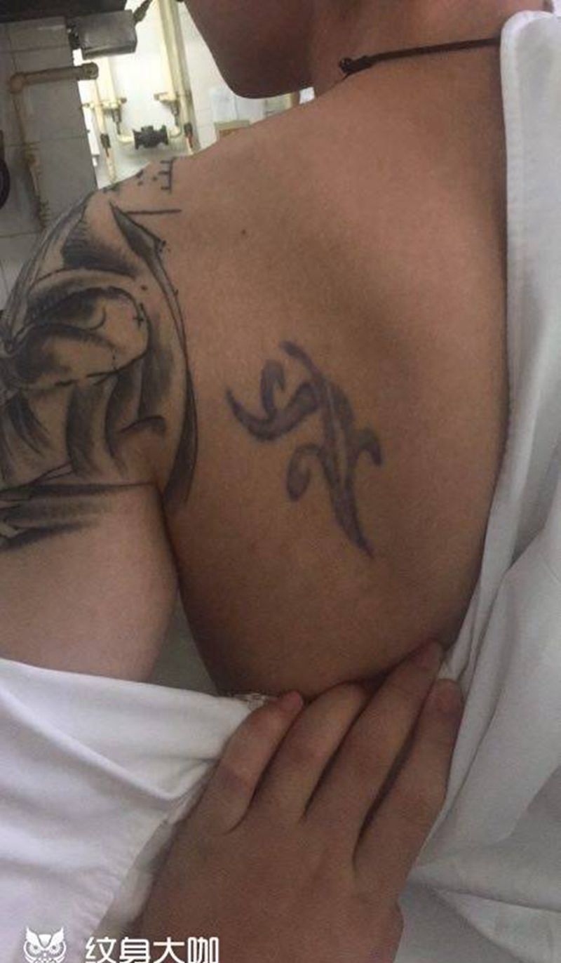当前位置: 首页 >北京市纹身店-北京花刺纹身工作室纹身图案>后肩鲤鱼遮盖!纹身图片_背部传统动物纹身图案
