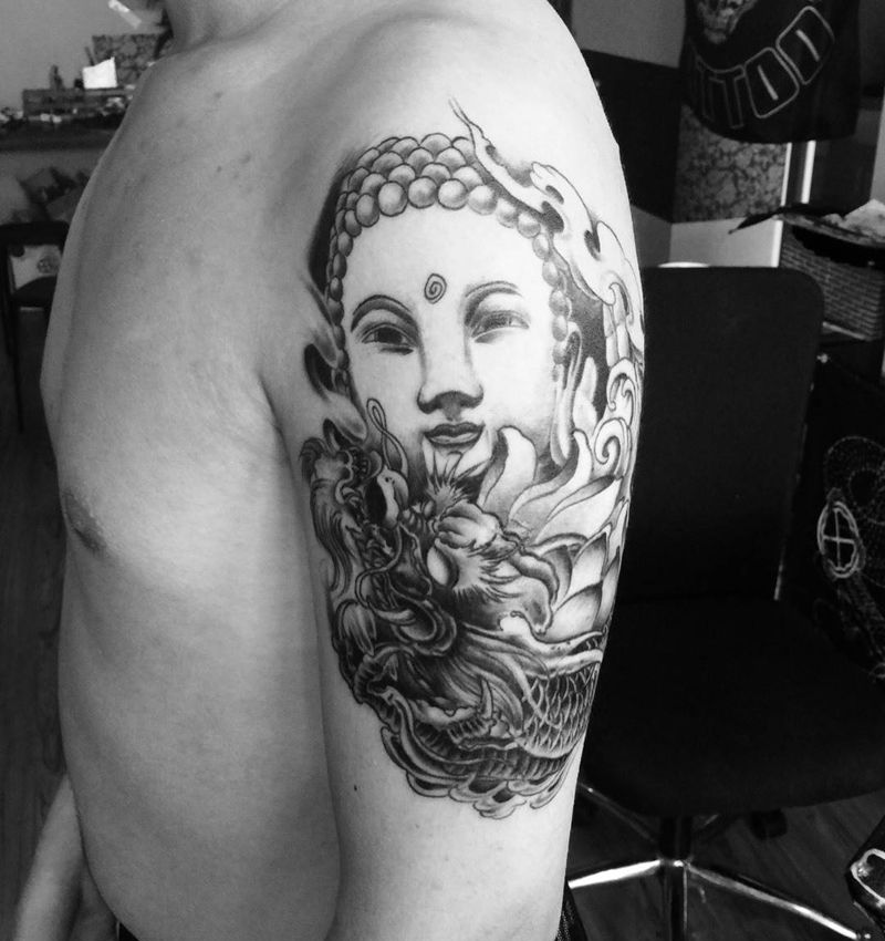 当前位置: 首页 >北京市纹身店-北京花刺纹身工作室纹身图案>小宁工作大臂佛纹身图片_成品手臂传统人物动物纹身图案