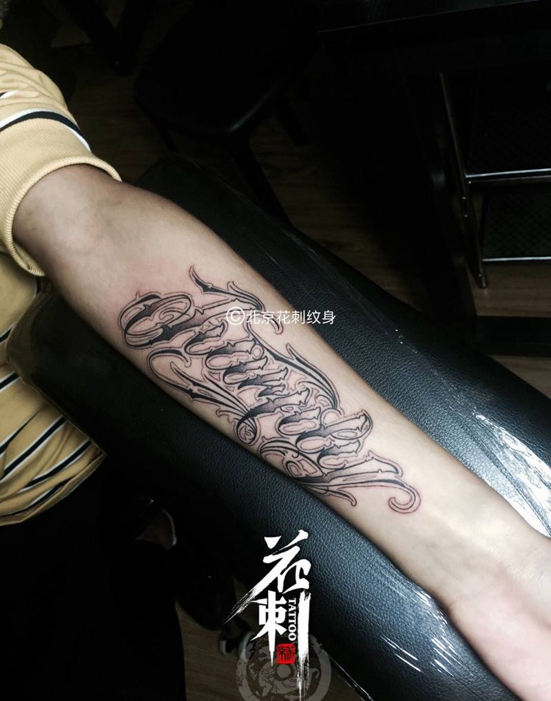 当前位置: 首页 >北京市纹身店-北京花刺纹身工作室纹身图案>花体字纹身图片_手臂欧美字符纹身图案