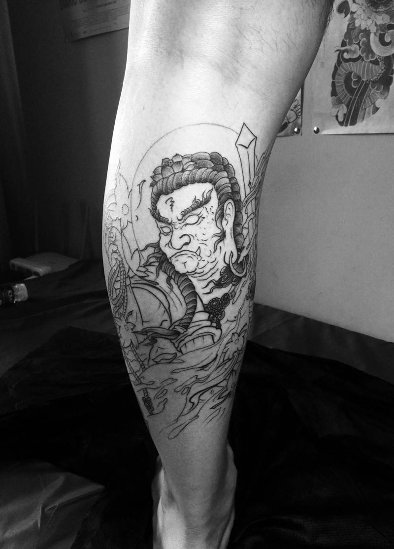 当前位置: 首页 >北京市纹身店-北京花刺纹身工作室纹身图案>不动明王纹身图片_腿部传统人物宗教纹身图案